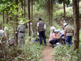 ところが、曇り空で比較的涼しいとはいえ、すぐさま休憩。 あ〜、イッポンのこの一服がたまんないですよね〜、奥のお方! |
