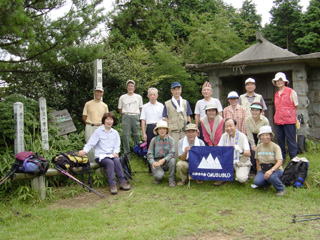 出発して約1時間、ようやく那須ヶ原山に到着です。 まだまだ元気で、にこやかな内に、記念写真をとって正解でした。 この後、メンバーを待ち受けている運命は!! |