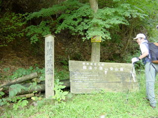 | 那須ヶ原山への登山口です。 年季の入った案内板で、ルートの確認をして、いざ出発、まだまだ元気です。 |