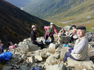 サッパリした後は、男性組・女性組に分かれて行動です。男チームは明神へ、女チームはホテルをハシゴしての上高地グルメ散策です。清水屋ホテルでお薦めのカレーをいただき、ちょっと田代池まで足を伸ばして運動した後は、帝国ホテルでティータイム。あげくの果てに、バスターミナルで集合してタクシーに乗る予定が、どうせ道すがらなのだからと、帝国ホテルまで呼びつける始末。最後の日は、すっかり大名登山気分です。