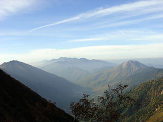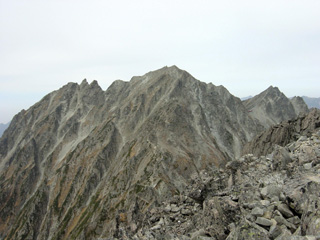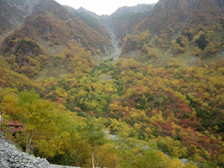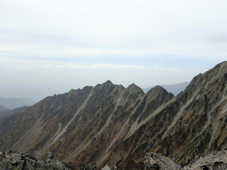 参加者はこの後も大いに盛り上がりますが、「ウチら、行ってないんやから、話についていかれへ〜ん」と思し召す方々に、岳沢から、前穂山頂から、素晴らしい景色をお送り致しましょう。ボタンをクリックすれば写真が代わります。それでは、どうぞご一緒に。