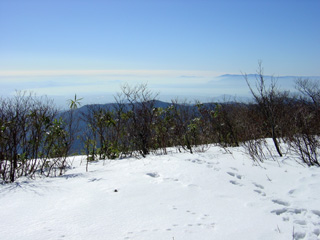 「休憩〜!」という声も上がりますが、この向こうはもう頂上だから、、という先頭の一声で休みなし。12:20 ようやく山頂(1317M)に到着です。確かに20分ではムリでしたが、頂上からの眺めは10分や20分の違いなんて、どーでもいいや、と思える絶景です。