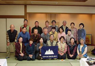 山頂到着は10:30。20分の登りとは云えけっこうな急登、ほんまにこの山466Mなのかいな・・・。しかも山頂はあまり展望がきかないので、眺めを楽しみたい向きは、火床でゆ〜っくりお楽しみ下さい。ここで我々21名を上回る団体さんが反対側から登頂。山頂は混雑状態なので、そそくさと出発します。